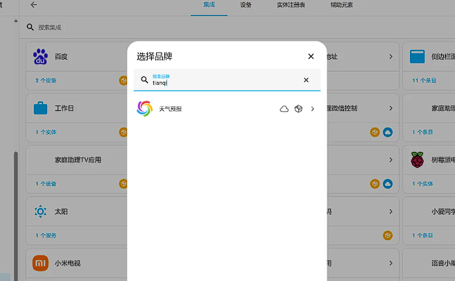 从某个版本开始,HA进行了一些优化,使得在初次下载安装插件时,我们不再需要重启HA就可以直接使用。现在,我们只需在集成中搜索插件名称,就可以找到对应的插件并立即使用。