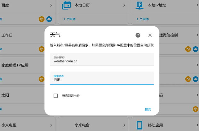 另外,如果你使用彩云天气卡片,可以在此处勾选此功能。彩云天气卡片具有一些特殊属性需要展示。勾选此功能后,插件将能够兼容这些差异的功能。